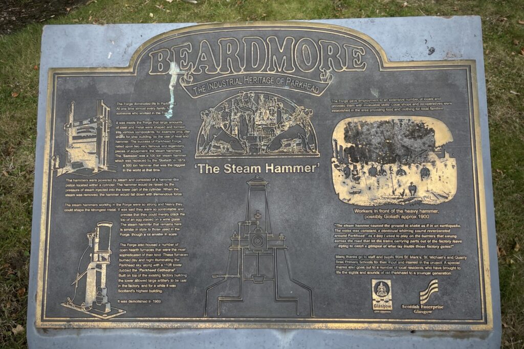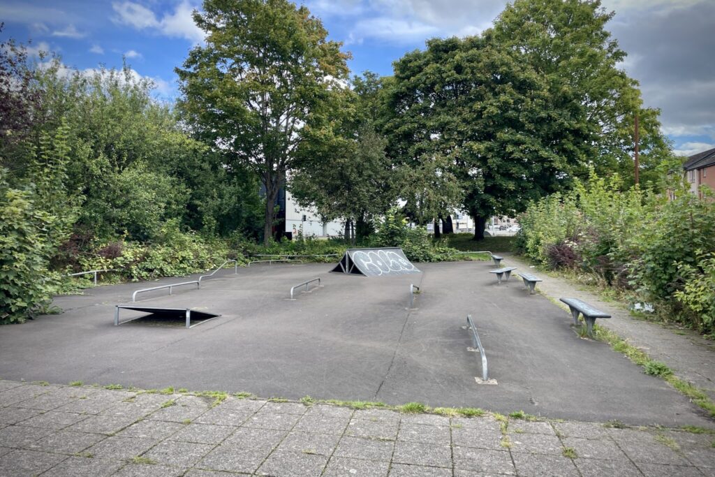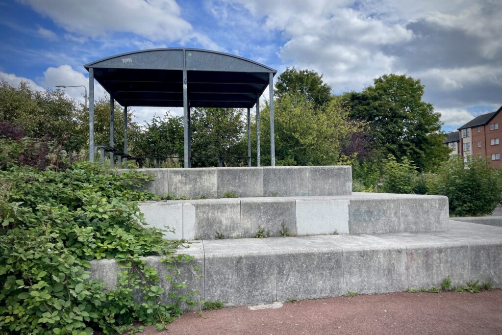 A small community park with a bandstand, a sports field, an exercise area, a play park and a skate park. On the edge of the park is the Parkhead Hammer, a large steam hammer once used in Parkhead Forge. (10/09/25)